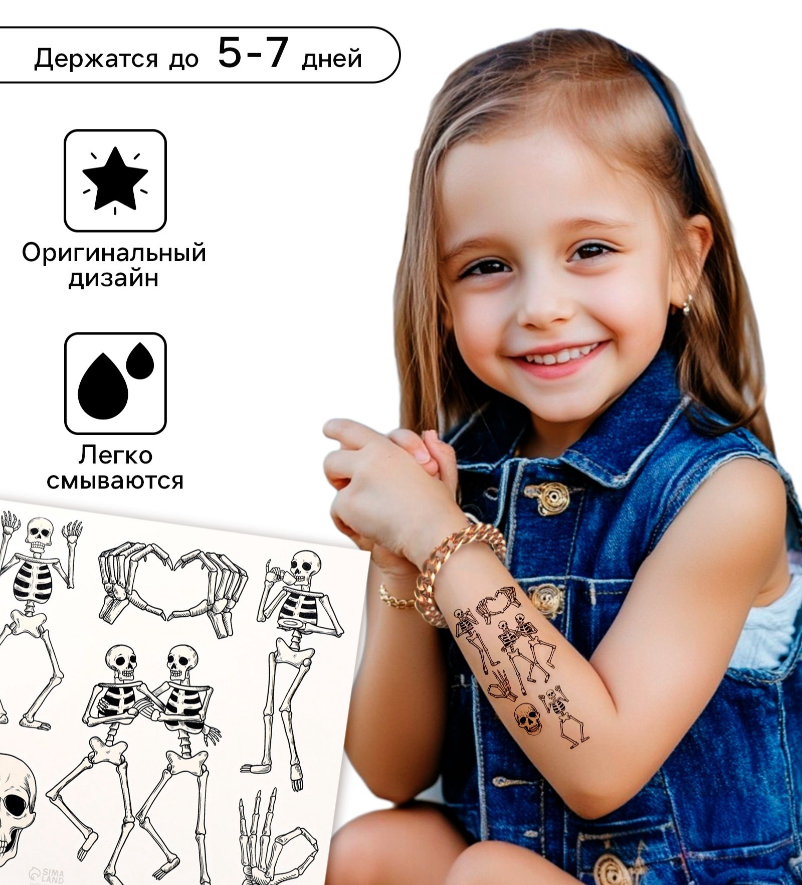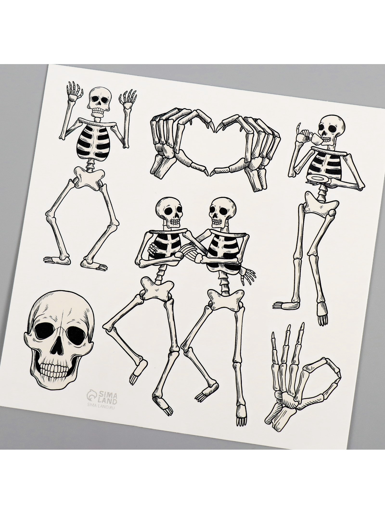 Воплоти свои креативные идеи: Эти временные татуировки позволяют изменять образы и экспериментировать со стилем без компромиссов. Они идеально вписываются как в повседневный образ, так и в праздничные наряды, подчеркивая вашу индивидуальность. Независимо от мероприятия — будь то тематическая вечеринка или повседневный выход, «Скелеты» станут вашим верным спутником в создании уникального, привлекающего взгляды образа!