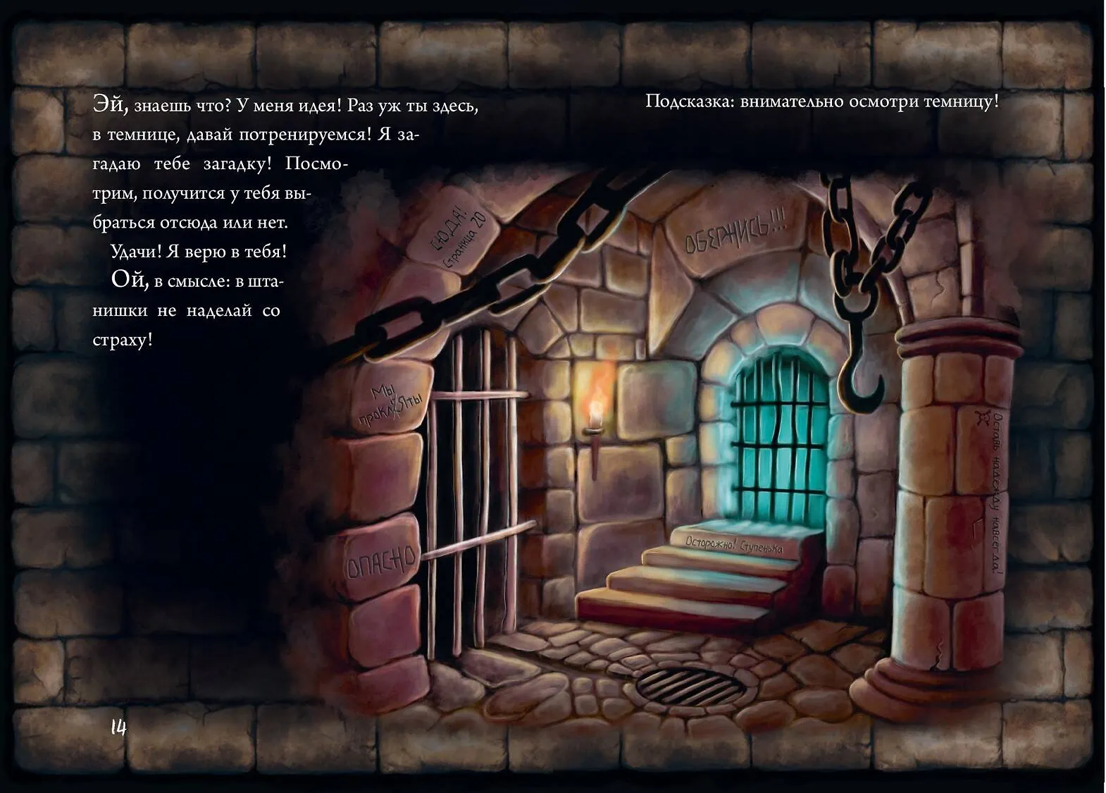 Чтобы пройти всю книгу до конца (принимая решения на сюжетных развилках и переходя по разным страницам не по порядку), нужно разгадать немало загадок и головоломок, которые развивают внимание и мышление.
