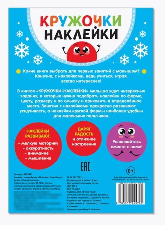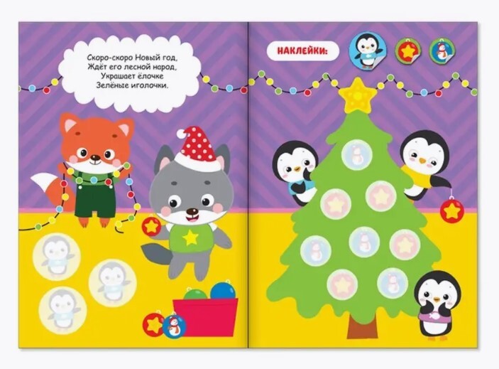 Развивающие наклейки-кружочки пригодятся при обучении малышей важным навыкам. Книга «Приходи, Новый год!» направлена на тренировку цветовосприятия и запоминание оттенков.