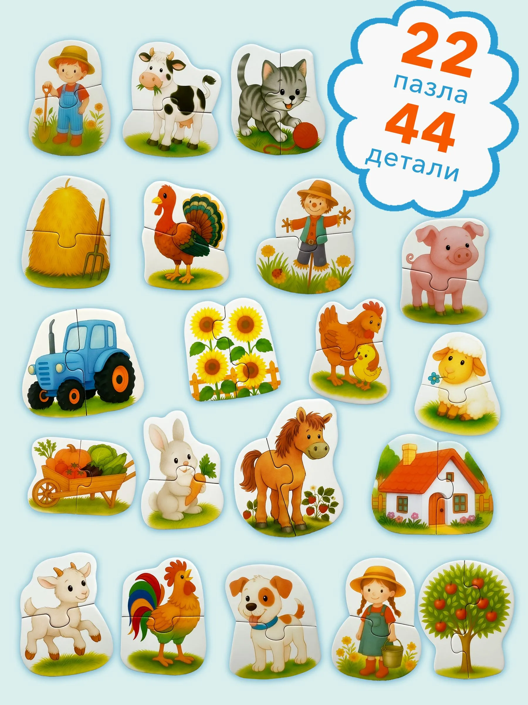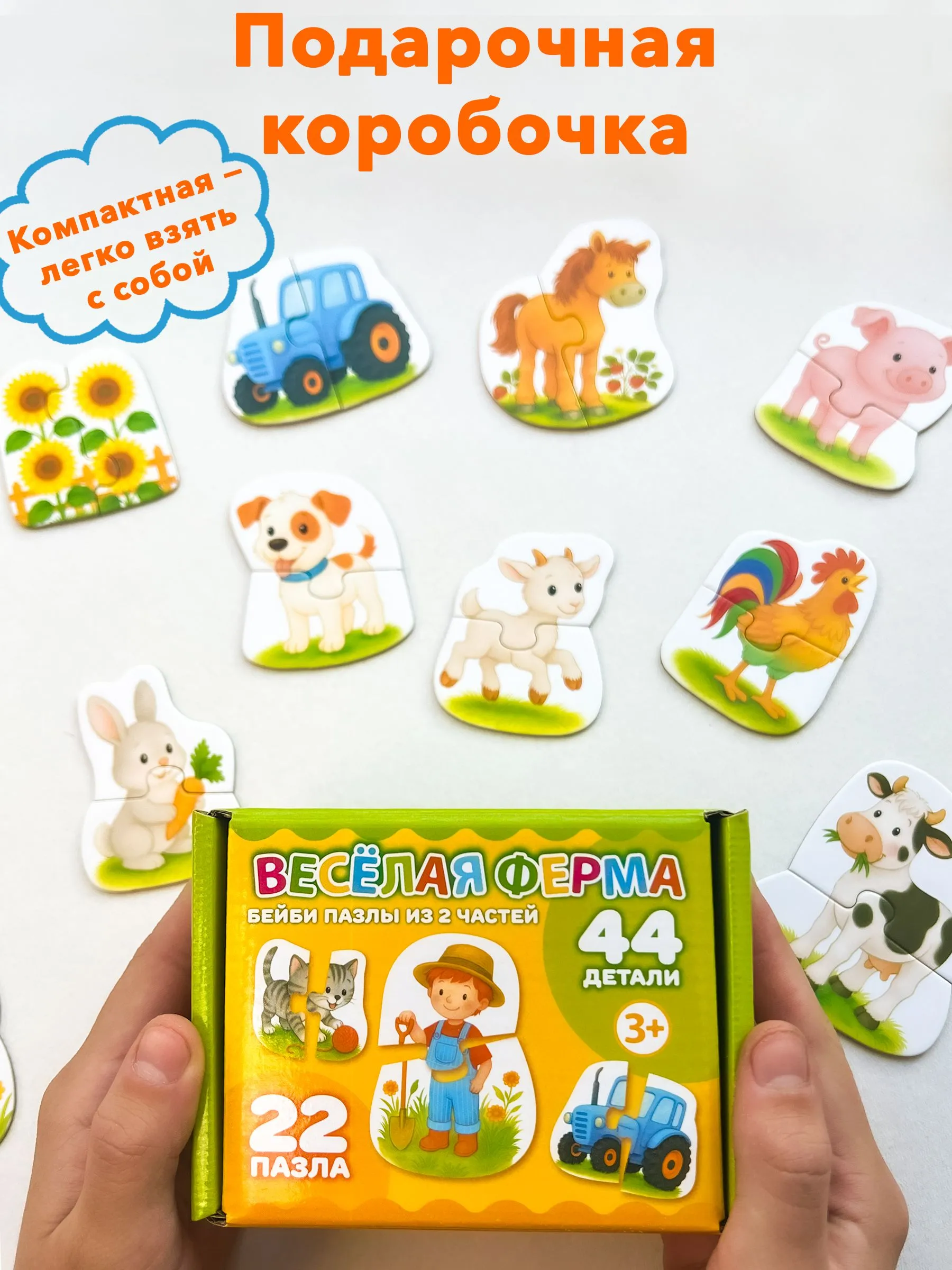 Бейби пазлы для детей 2 и 3 лет "Веселая ферма" от Бигр.