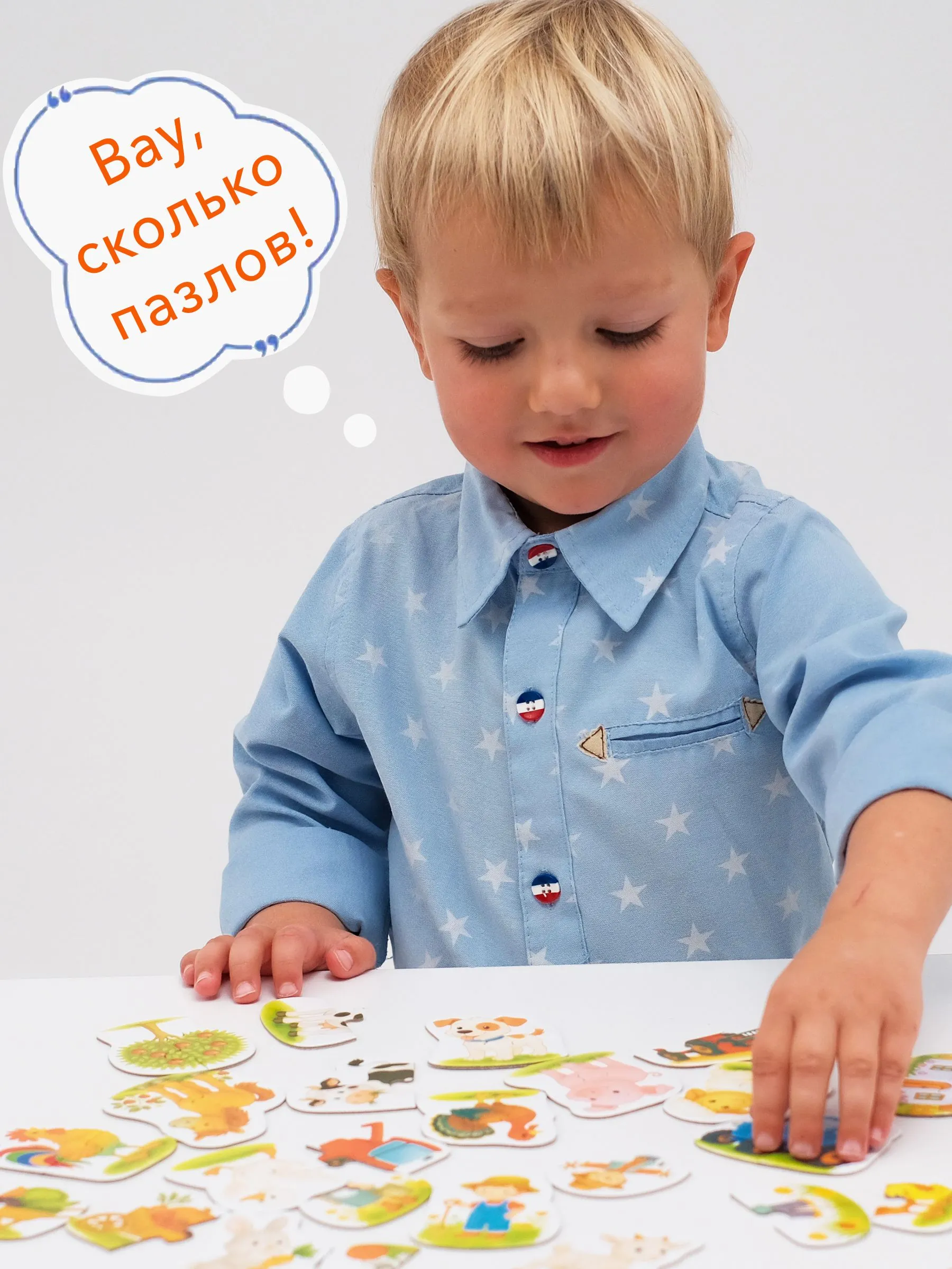 Большие пазлы для детей от 2 лет помогают ребёнку учиться сопоставлять формы и образы, знакомят с миром фермы и животными.