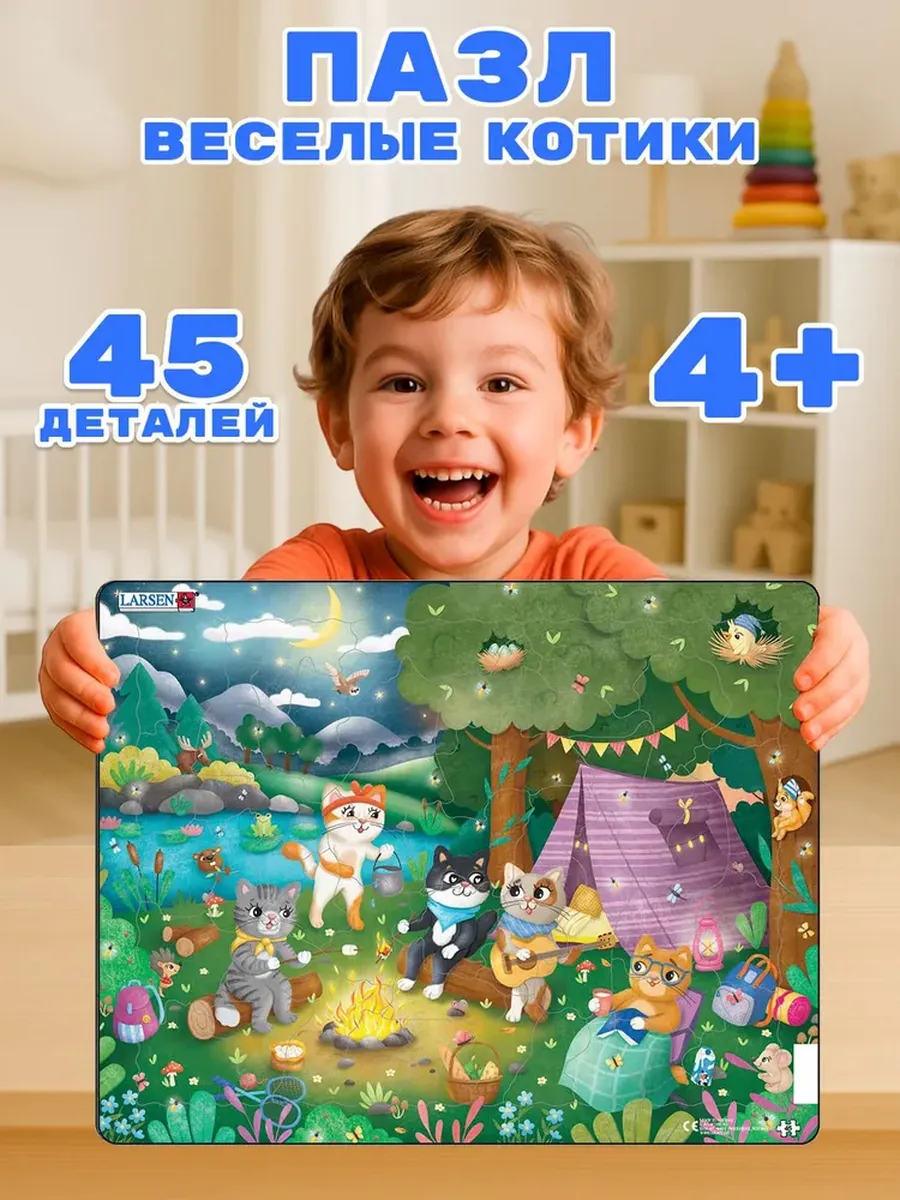 Пазлы LARSEN «Веселые котики - вечеринка на природе" - увлекательная и развивающая игрушка для детей.