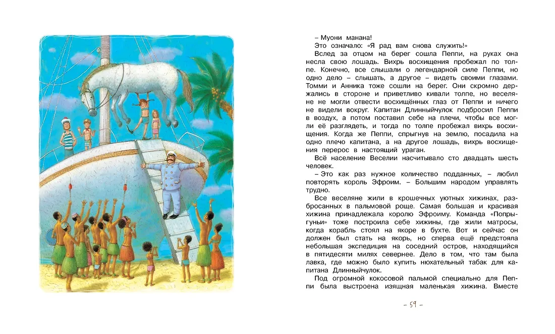 Свежий ветер уже надул паруса «Попрыгуньи», и скоро, очень скоро Пеппи Длинныйчулок увидит страну Веселию, в которой её отец могущественный король.