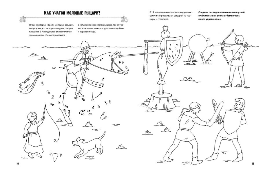 Чем такое рыцарский турнир? Как выглядит настоящая крепость? Как происходит посвящение в рыцари? Ответы на эти и многие другие вопросы ваш ребёнок узнает из этой раскраски. Детальные рисунки, цветные наклейки и интересные задания идеально подойдут для первого знакомства с храбрыми рыцарями и их эпохой.