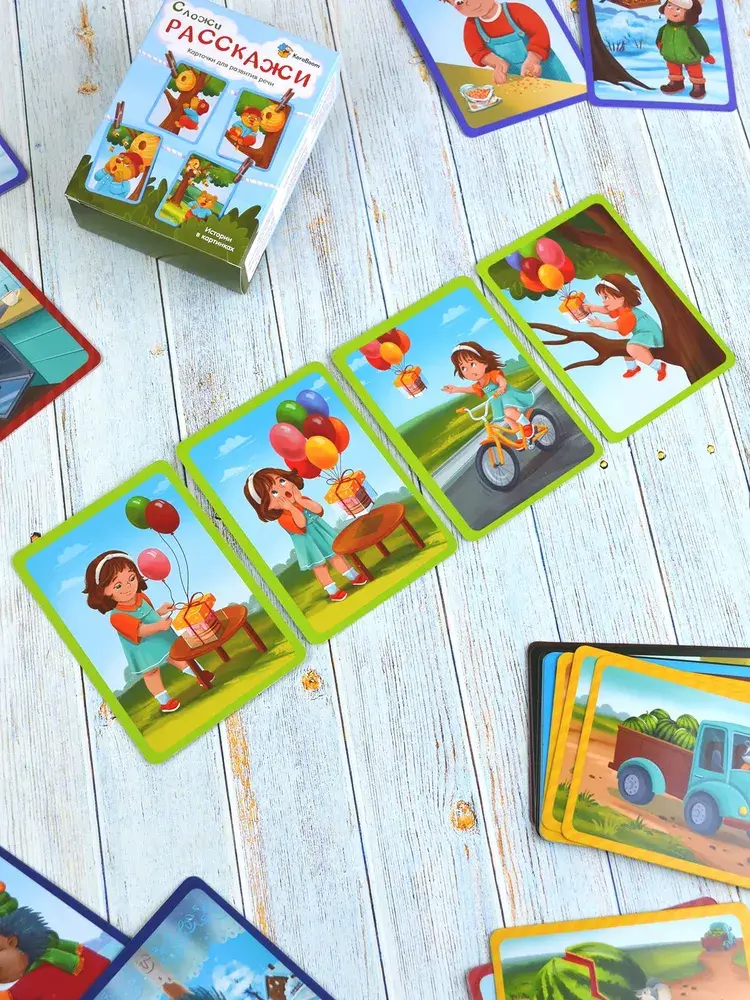 Карточки «Сложи-расскажи» – это уникальный развивающий набор, созданный для активного развития речи, логики и воображения у детей.