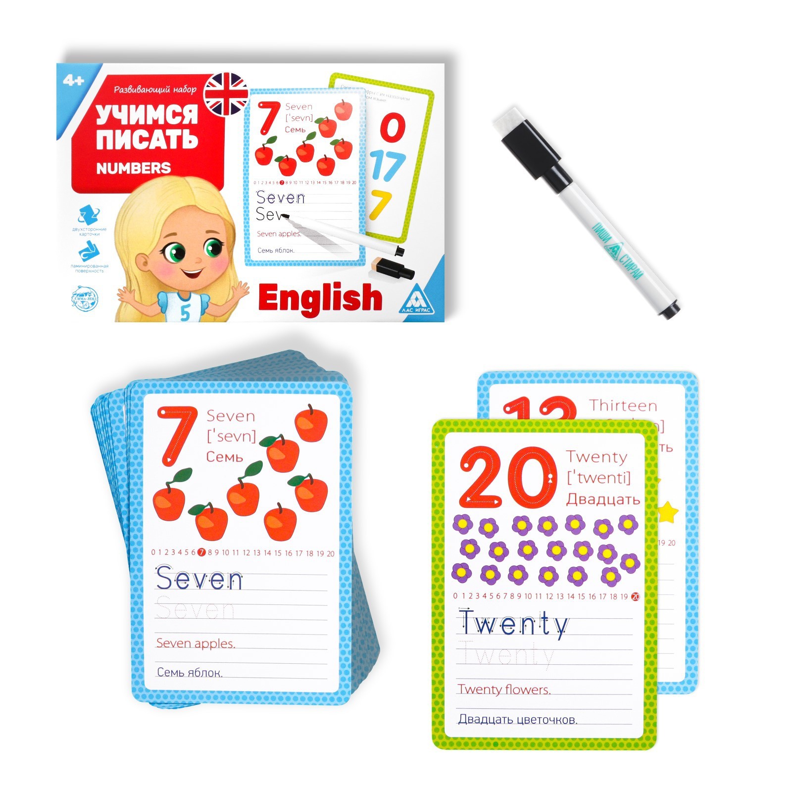 Развивающий набор «Учимся писать. Numbers» познакомит ребёнка с произношением и написанием цифр на английском языке.