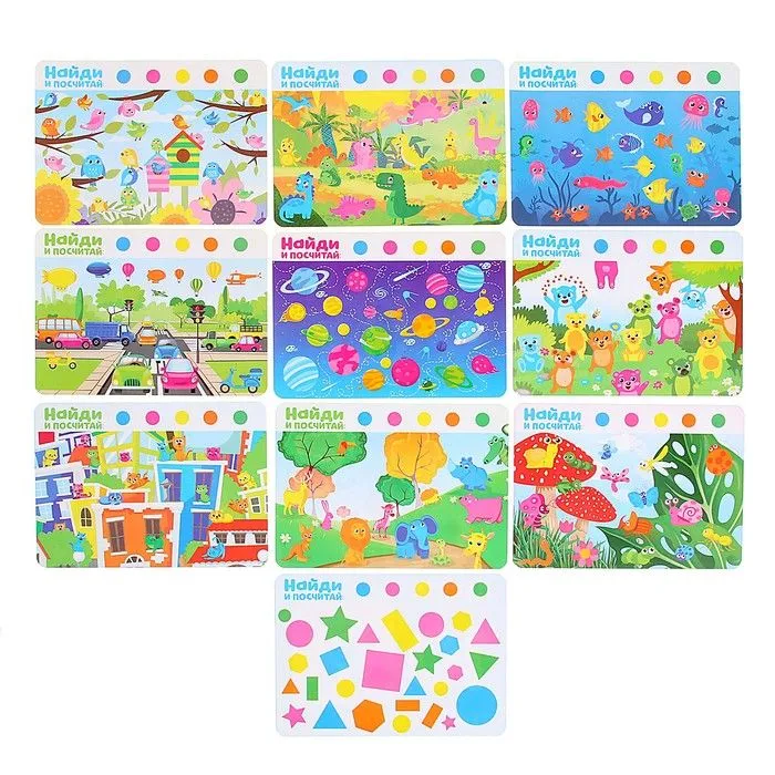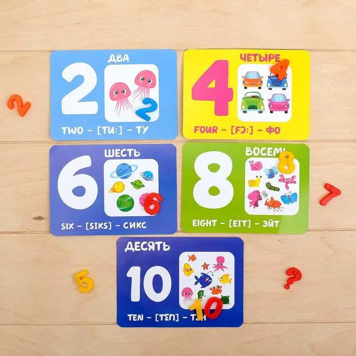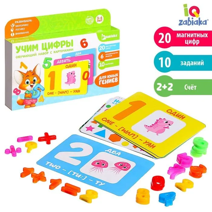 Набор «Весёлая математика» создан для обучения деток счёту и решению простых арифметических задач. С карточками-примерами и вашей помощью ребёнок сможет научиться считать.