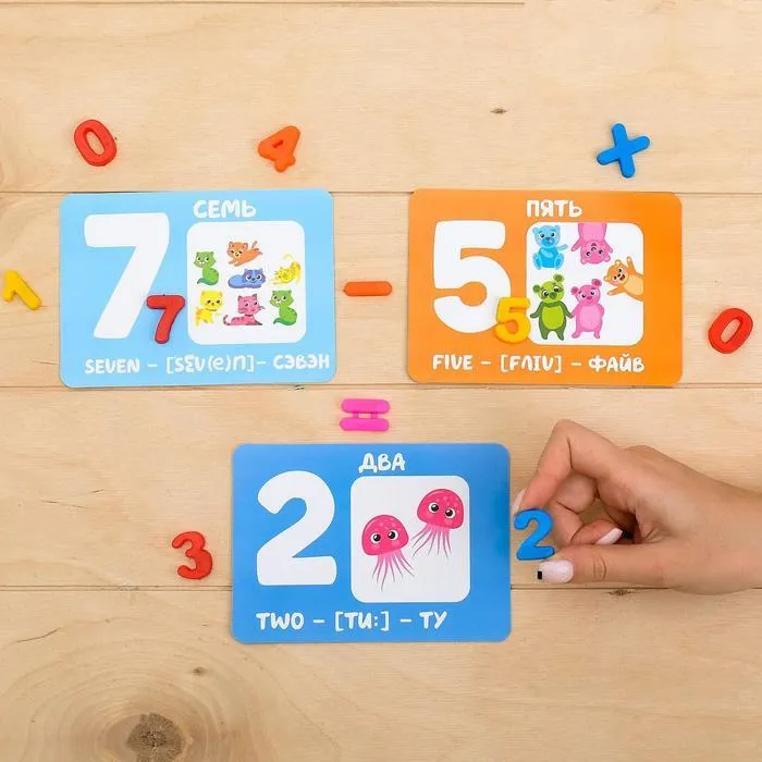 Обучающий набор с магнитными пластиковыми цифрами «Учим цифры», карточки с заданиями, по методике Монтессори