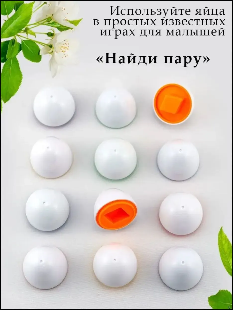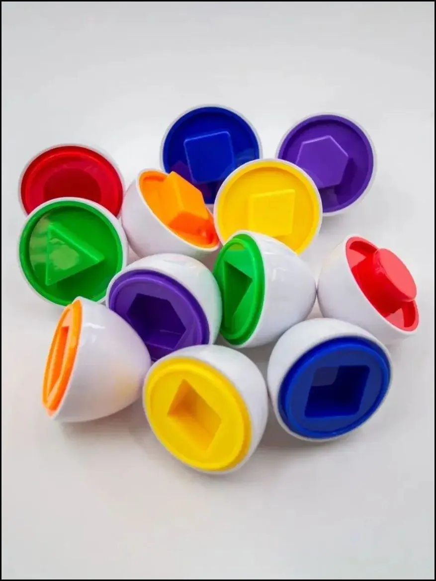 Разложить все яйца на половинки очень просто, а вот собрать их обратно, это уже развивающая задачка. Внутренняя часть каждого яйца имеет свою форму и цвет, ориентируясь по этим признакам нужно собрать все обратно.