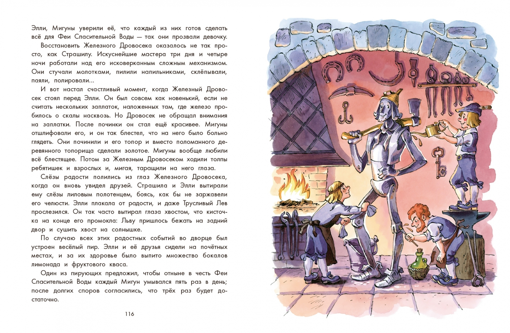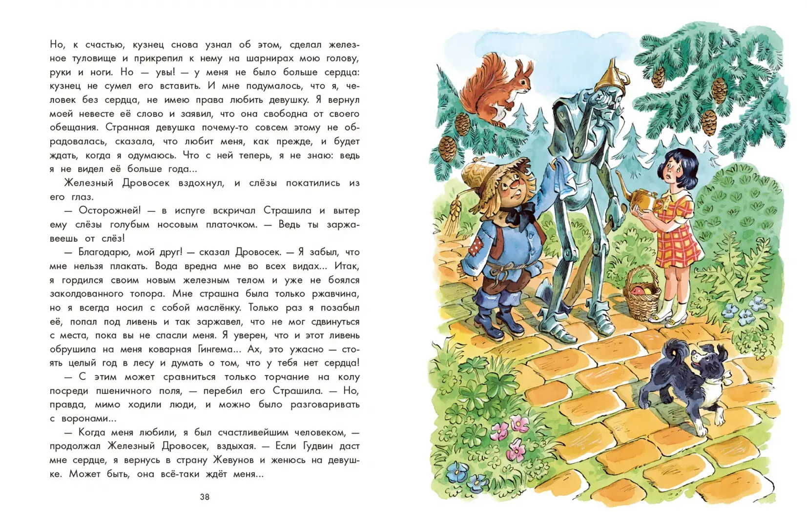 Герои книги - Страшила, Железный Дровосек и Трусливый Лев - мечтают об исполнении своих заветных желаний. Страшила хочет стать умным. Железный Дровосек - добрым и любящим, Лев - смелым и отважным, как и подобает царю зверей. А Элли больше всего на свете желает вернуться домой, в Канзас, к маме и папе. Ведь девочка удивительным образом оказалась в совершенно чужой и к тому же волшебной стране. Теперь только великий Гудвин, волшебник Изумрудного города, может помочь ей, а также её друзьям, в исполнении их желаний. И герои этой чудесной сказки отправляются по дороге, вымощенной жёлтым кирпичом, в далёкий Изумрудный город.