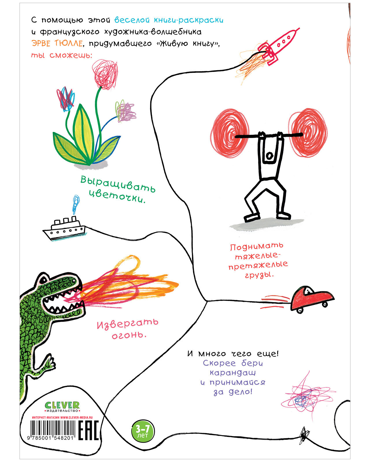 «Эта книга превращает любимые детские закорючки и каракули в произведение искусства! Каждая каляка-маляка ребенка буквально оживает на каждой странице и превращается в живого героя, с которым можно играть и веселиться!» — редактор Clever.